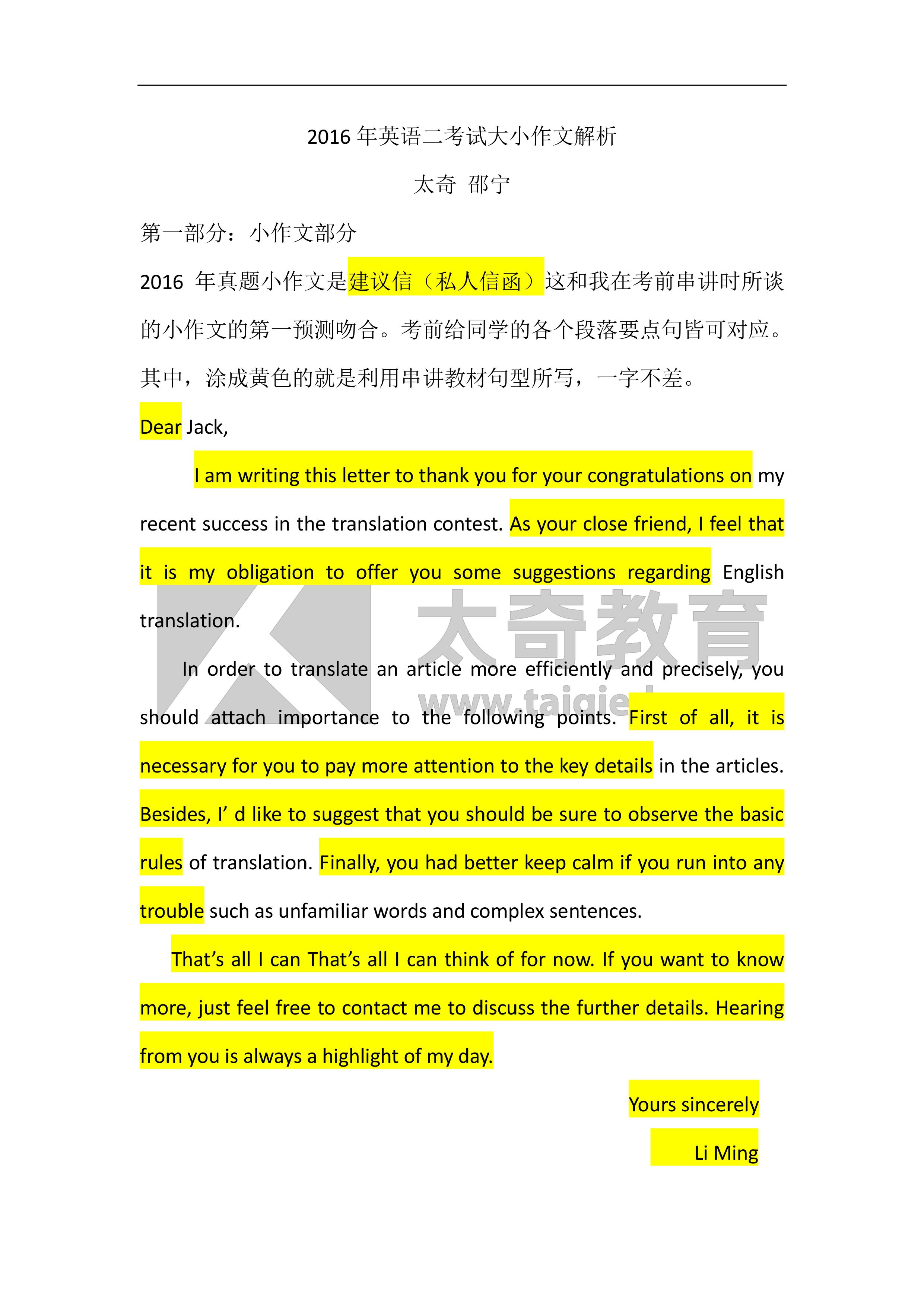 在2016年聯(lián)考中,英語(二)寫作部分太奇直接命中大、小作文,比命中考題更為重要的是:太奇在對每次??嫉闹R點(diǎn)、考點(diǎn),尤其在對命題方向的把握上極其精準(zhǔn)。