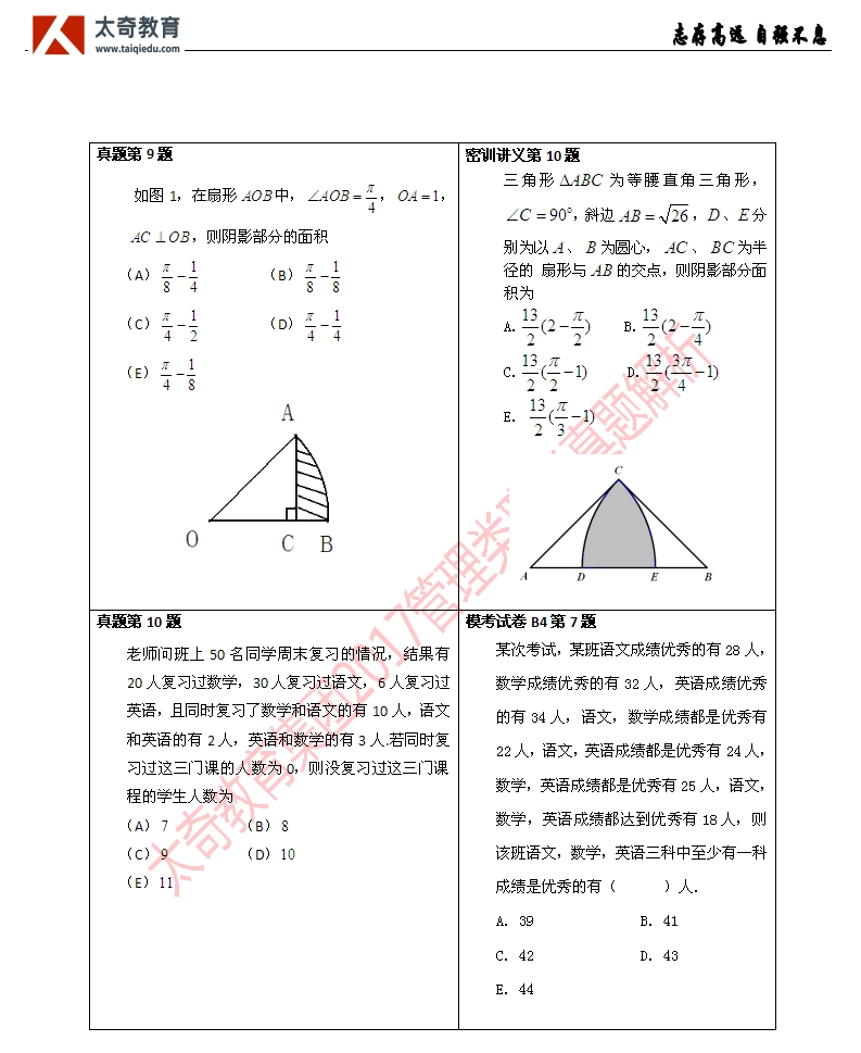 祝賀太奇教育2017管理類聯(lián)考數(shù)學(xué)直接命中66分(3)