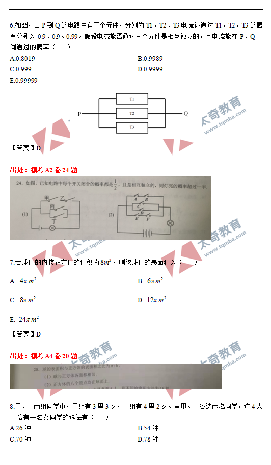 太奇2021年MBA管理類聯(lián)考數(shù)學(xué)真題命中對照(3)