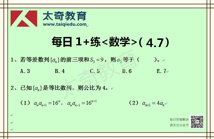 太奇MBA管理類聯(lián)考數(shù)學(xué)每日一練 4-7