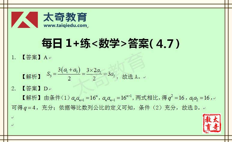 太奇MBA管理類聯(lián)考數(shù)學(xué)每日一練 3-31